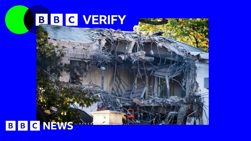 Workers demolish the facade of the East Wing of the White House on Oct. 20, 2025 in Washington, DC. Kevin…