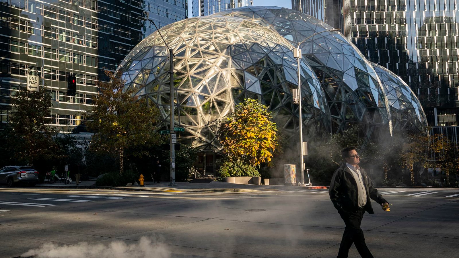 A person walks by The Spheres at the Amazon.com Inc. headquarters in Seattle, Washington, on Nov. 14, 2022. David Ryder…